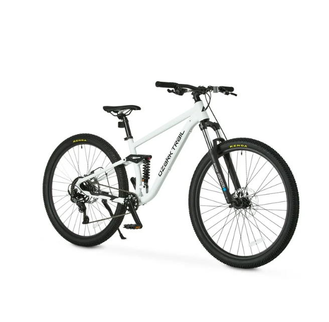 Ozark Trail FS.2 Slalom Full Suspension Mountain Bike, 29″ Wheels, Medium Frame, Fits Riders 5’6″ – 5’9″, Off-White, Adult